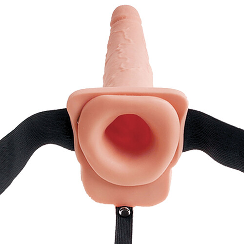 9" Hollow Squirting Strap-On With Balls