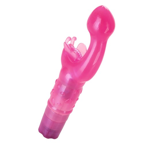 An enlarged tip goes to work on your G-Spot while the butterfly stimulator plays with your clit & lips. 100% discreet shipping at Adam & Eve.