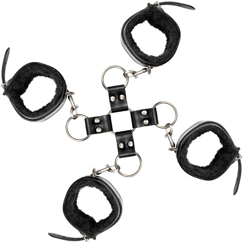Discover all the ways to play with fur lined wrist & ankle cuffs that restrain your lover for kinky bondage games with the Adam & Eve Hog Tie Kit.
