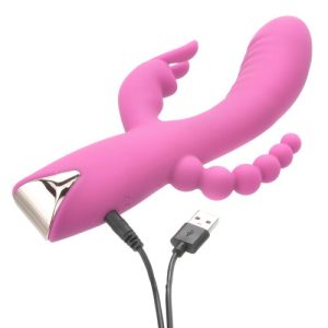 Triple your pleasure with the Hopping Bunny Triple Stimulator! The powerful vibe focuses on your G-Spot, clit & backdoor for intense O’s! Discreet shipping.