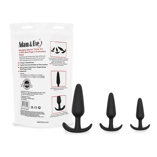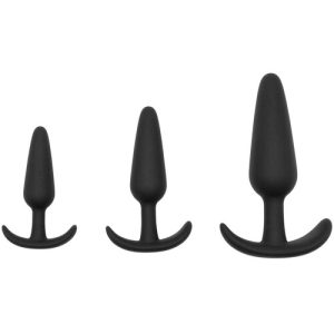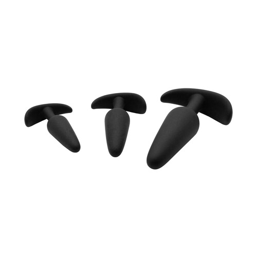 Train your backdoor for anal ecstasy with 3 butt plugs. Start small & work your way up. Made from anal-friendly silicone. Order now for discreet shipping.