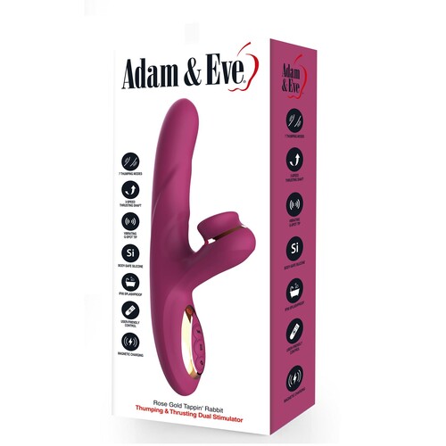 Adam & Eve Rose Gold Tappin' Thumping and Thrusting Dual Stimulating Rabbit