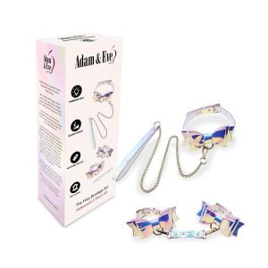 The Fairy Bondage Set is great for nights of kinky fun! Iridescent gear looks totally magical. Cuffs, collar, leash and connector included!