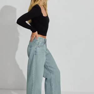 Addison Square Neck Top Black women – This is a perfect basic long sleeve for the girlies leaning into normcore in a knowing, girl-next-door-playing-it-cool type of way. YK? Features Square neckline Long sleeves Partial double lining Size & Fit Fitted, stretchy Cropped length Model is wearing size S Materials & Care Content: 75% cotton, 20% recycled cotton, 5% spandex Machine wash, cold Imported