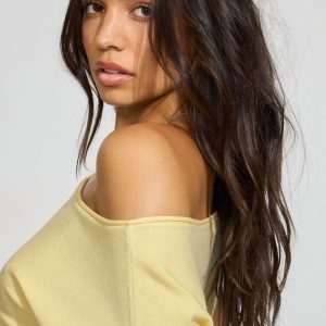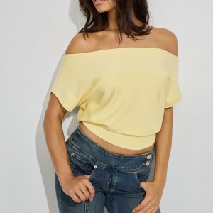 Asymmetric Cinched Waist Sweater Yellow women – Getting ready is a cinch. Features Asymmetric off-the-shoulder construction Short cap sleeves Cinched rib knit waist Size & Fit Fit: Relaxed Length: Cropped Model is wearing size S Materials & Care Content: 70% viscose, 30% nylon Care: Machine wash, cold Imported