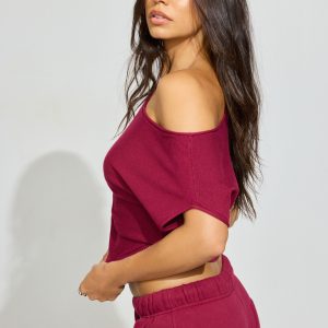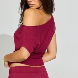Asymmetric Cinched Waist Sweater Burgundy women – Getting ready is a cinch. Features Asymmetric off-the-shoulder construction Short cap sleeves Cinched rib knit waist Size & Fit Fit: Relaxed Length: Cropped Model is wearing size S Materials & Care Content: 70% viscose, 30% nylon Care: Machine wash, cold Imported