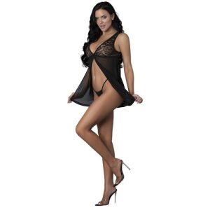 Set both your hearts racing in this super-soft and sensual babydoll and G-String. Sheer lace and gossamer mesh hug your curves in all the right places.