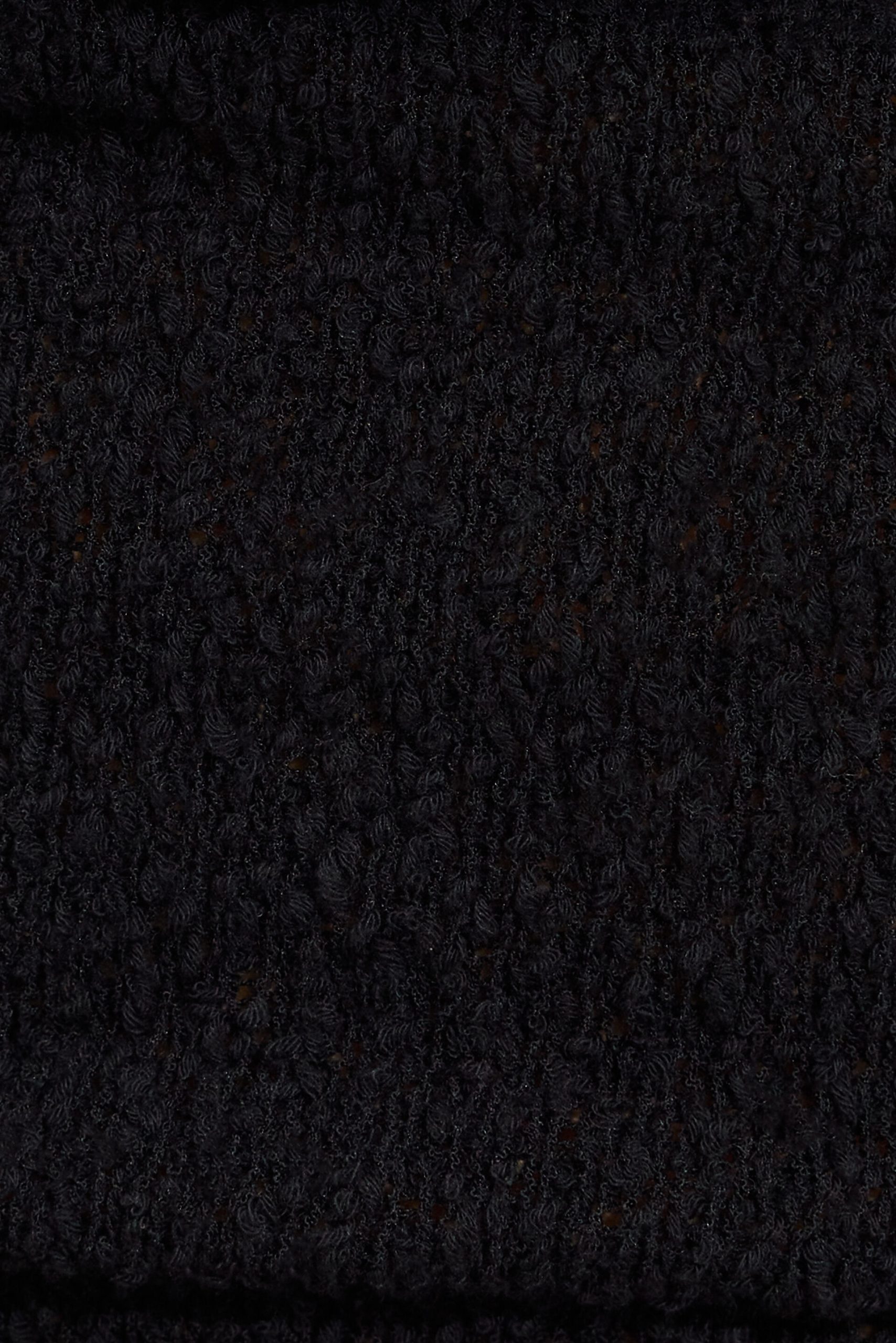 Bouclé Cowl Halter Top Black women – The way this is hitting different with some jeans ! Features Self-tie halter strap Open back Smocked midriff Size & Fit Fit: Fitted Length: Cropped Model is wearing a size S Materials & Care Content: 65% cotton, 35% nylon Care: Machine wash, cold Imported