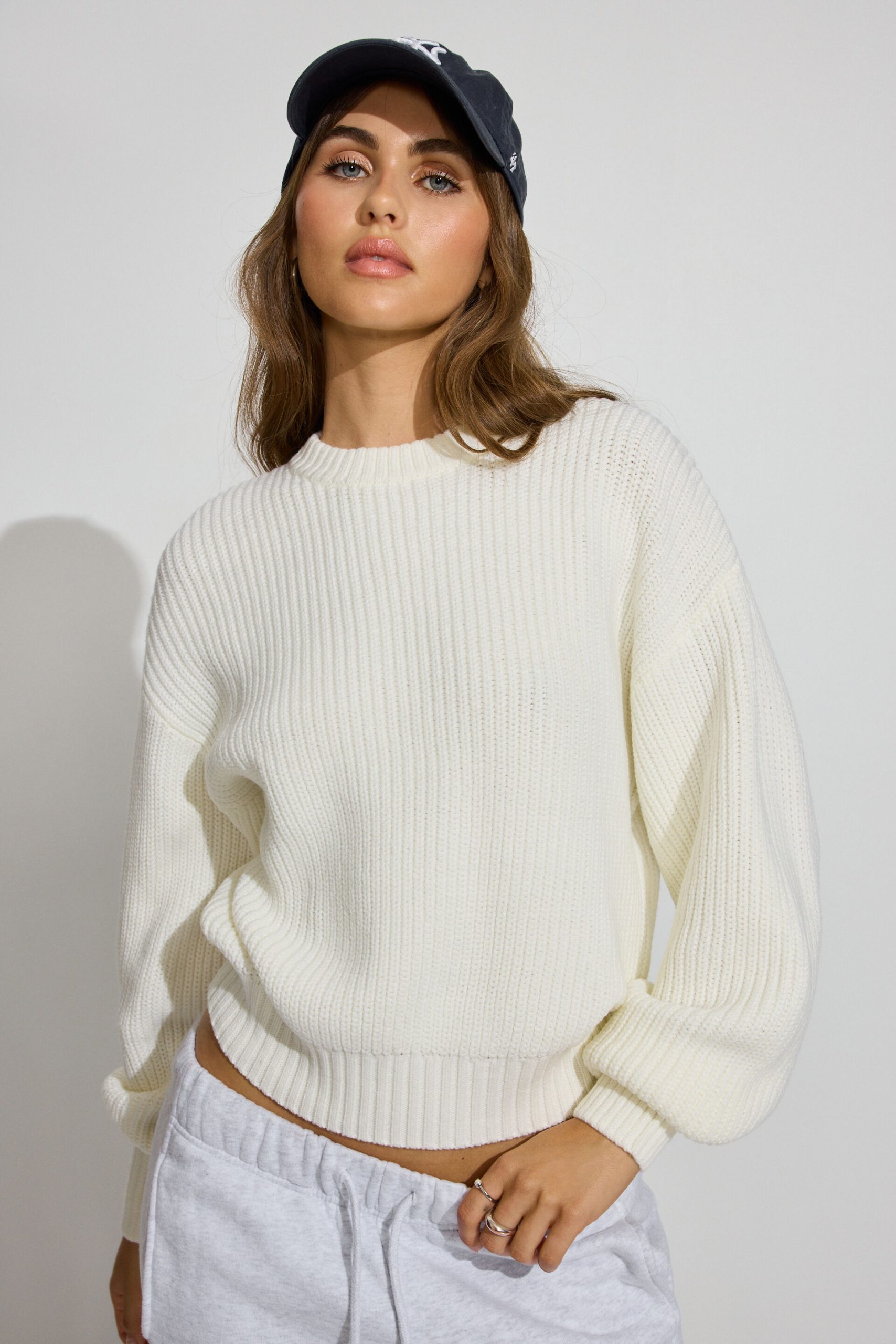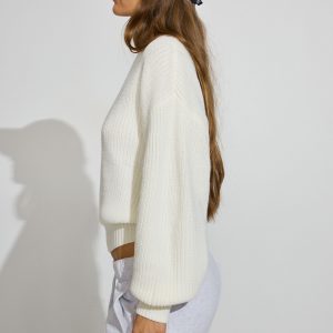 Bubble Sleeve Sweater White women – Cozy called, they want their sweater back. Features Rib knit crewneck, hem, and cuffs Dropped shoulders Balloon sleeves Size & Fit Relaxed fit Model is wearing size XS Materials & Care 80% acrylic, 20% cotton Hand wash, cold Imported