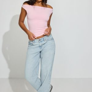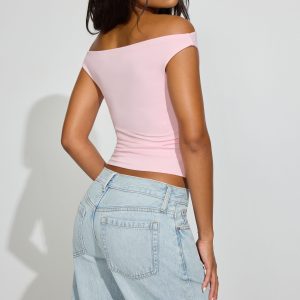 Clean Off Shoulder Top Pink women – Not our us being in our off shoulder era… Features Off-the-shoulder construction Double lined Size & Fit Fit: Fitted, stretchy Length: Regular Model is wearing size S Materials & Care Content: 93% recycled polyester, 7% spandex Care: Machine wash, cold Imported