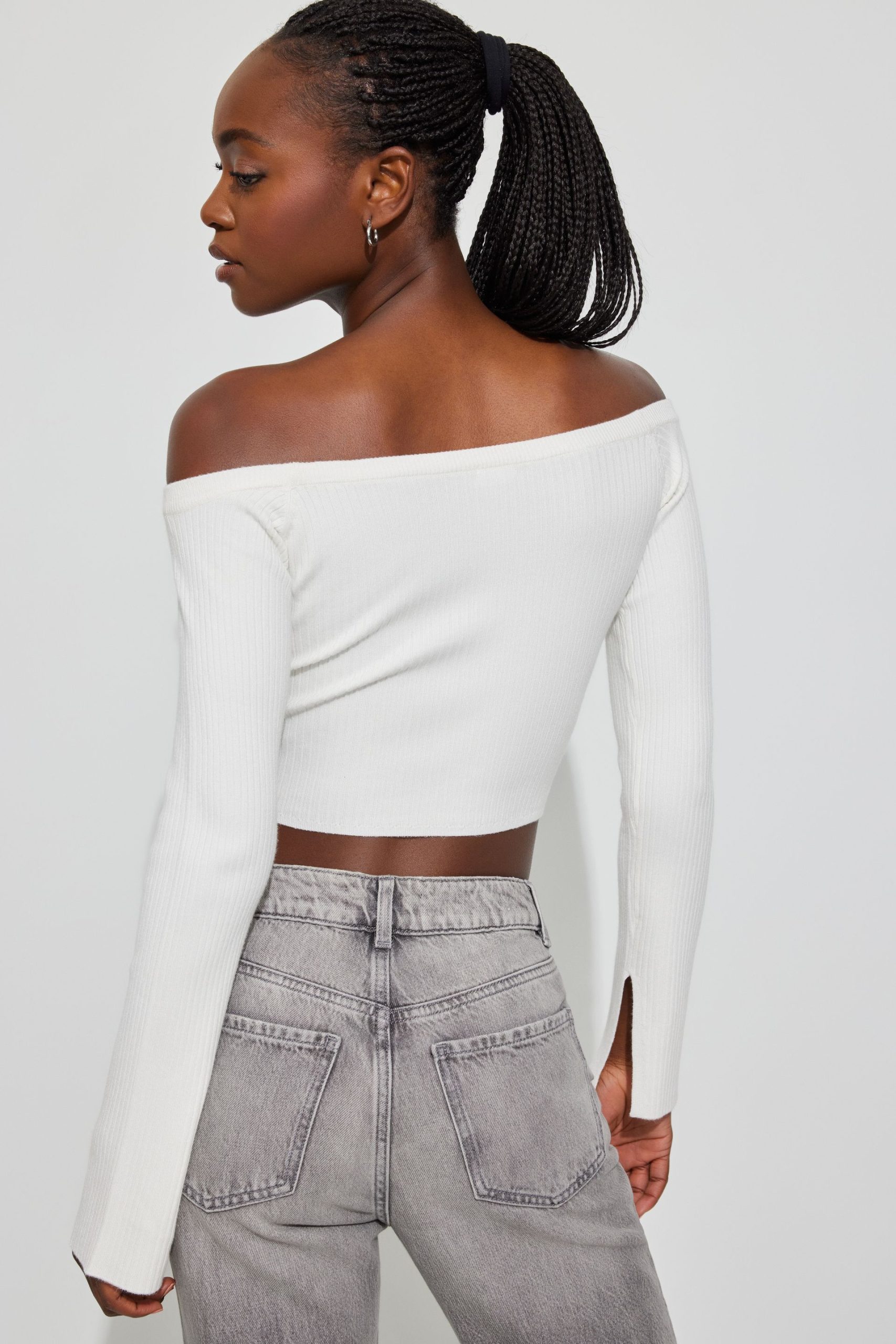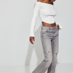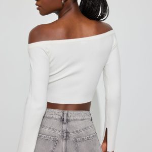 Corset Hem Off Shoulder Top White women – A gorgeous off-the-shoulder top with a cute corset detail 🙂 Features Ribbed Flared sleeves with slit detail Corset-style hem Size & Fit Fit: Fitted, stretchy Length: Cropped Materials & Care 80% ecovery visocse, 20% nylon Machine wash, cold Imported