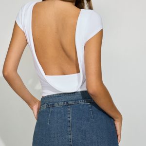 Cowl Back Short Sleeve Top White women – The way this is hitting different with some jeans ! Features Open cowl back Short sleeves Size & Fit Fit: Fitted Length: Cropped Model is wearing a size S Materials & Care Content: 95% polyester, 5% spandex Care: Machine wash, cold Imported