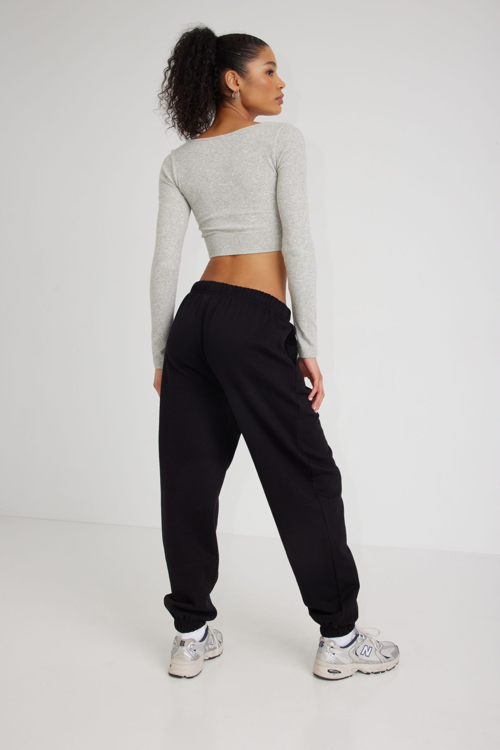 Easy Jogger Pant Black women – Feel easy like Sunday morning in these cozy fleece joggers. Features Elastic waist with adjustable drawstring Fleece interior Functional side pockets Elasticized cuffs Size & Fit Fit: Relaxed Rise: High Inseam length: 29