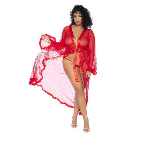 This Holiday Robe is all about seduction & luxury! Floor length & feather lined, perfect for holiday fun. Exclusively at Adam & Eve!