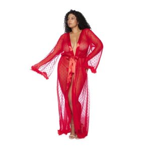 This Holiday Robe is all about seduction & luxury! Floor length & feather lined, perfect for holiday fun. Exclusively at Adam & Eve!