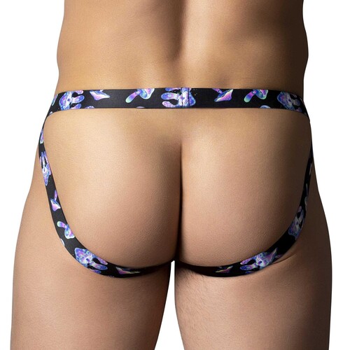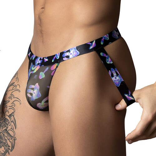 Leave all onlookers in a haze of desire! This silky-soft microfiber jock’s magic mushroom print glows under blacklight to show off your bulge.