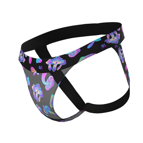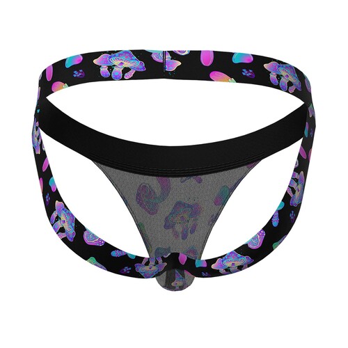Leave all onlookers in a haze of desire! This silky-soft microfiber jock’s magic mushroom print glows under blacklight to show off your bulge.