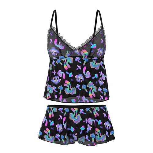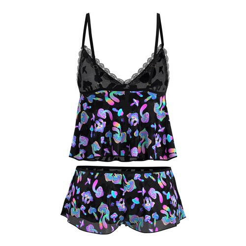 Be a babe under the blacklights in this magical mushroom cami set. Total comfort, wild sex appeal & psychedelic style – all in one!