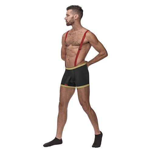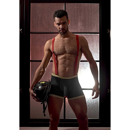 Is it hot in here or is that just you? Fight fires in these tight bottoms and sexy suspenders.