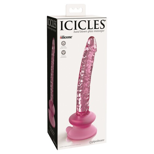 Icicles Realistic Pink Glass Dildo With Suction Cup