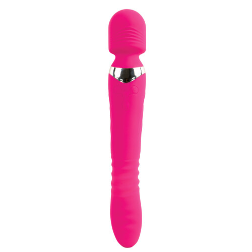 There are 2 sides to this toy: a powerful wand massager for surface stimulation & a 6-inch thrusting vibe. Discreet shipping from Adam & Eve.