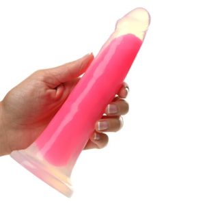 The fun starts when the lights go out with this glowing good time toy! This 7-inch dildo fills you up for ultimate thrills. Super strong suction cup base.