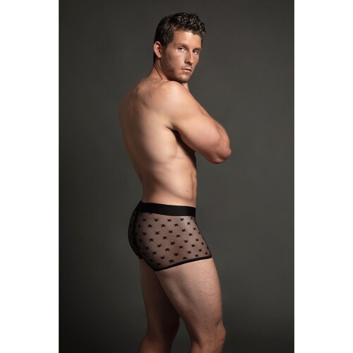 Come on, boys! Show ‘em some skin in these flashy sheer boxers. An all-star pattern emphasizes what your exposed package reveals: you’re a big deal!