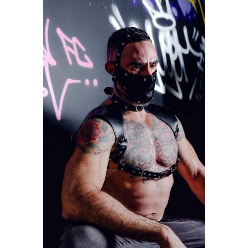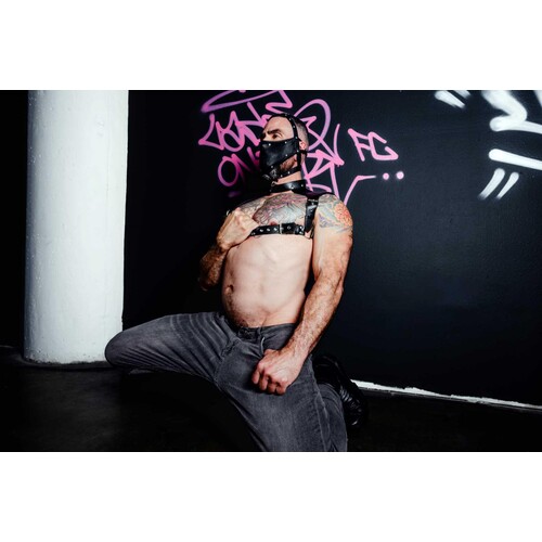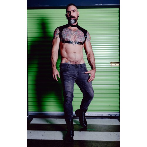 Command attention and dominate the room with the kinky Men’s Harness with neck collar! Features 7 adjustable straps for a great fit. Discreet shipping.