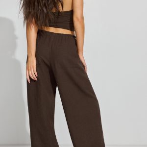 Millie Linen Pull-On Pants Brown women – So soft and with a baggy fit to better accentuate your little tops ! Features Self-tie drawstring at waistband Four-pocket styling Semi-sheer (in lighter colors) Size & Fit Fit: Relaxed Rise: 9.5