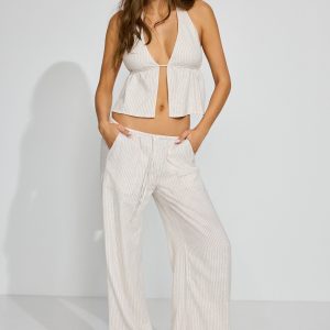 Millie Linen Pull-On Pants Beige women – So soft and with a baggy fit to better accentuate your little tops ! Features Self-tie drawstring at waistband Four-pocket styling Semi-sheer (in lighter colors) Size & Fit Fit: Relaxed Rise: 9.5