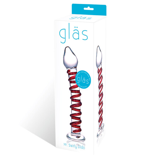 A high-quality glass dildo with a curved & textured shaft for G-spot, vaginal & prostate stimulation, Mr. Swirly aims to please. 100% discreet shipping.