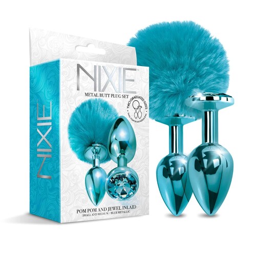 Nixie Jeweled Metal Pom Pom Butt Plug Set