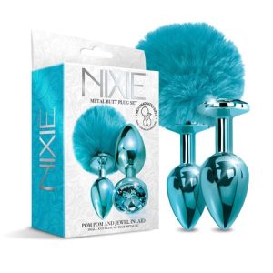 Nixie Jeweled Metal Pom Pom Butt Plug Set
