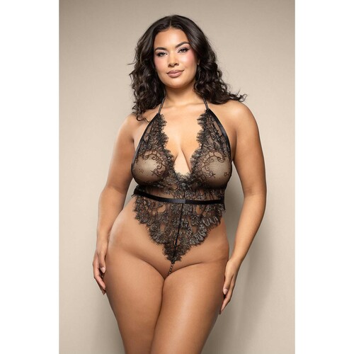 Start a whirlwind romance in this luscious lace teddy with pearl string crotch! Sexy plunging front with stimulating pearls = bedroom bliss.