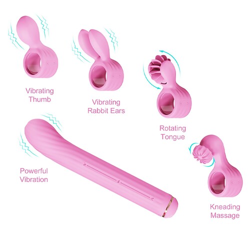 Hit once, hit twice… hit 4 times with the Magic Stick! This vibrator comes with 4 interchangeable clit attachments. Never play the same way twice!