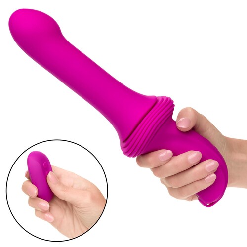 This sex machine pumps you up with thrusting thrills & sensual vibration sure to send you into ‘gasmic bliss!
