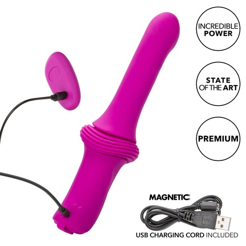 This sex machine pumps you up with thrusting thrills & sensual vibration sure to send you into ‘gasmic bliss!