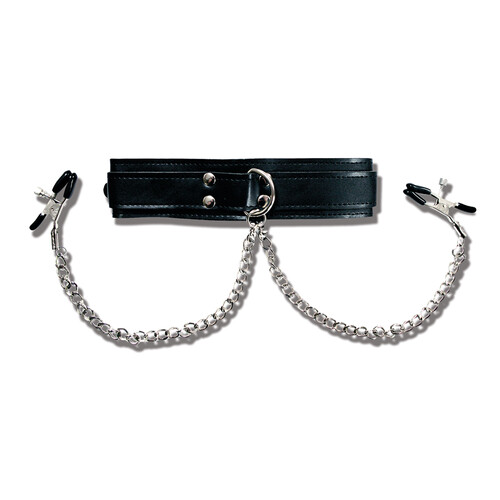 A leather-like collar attaches to two adjustable nipple clamps for naughty fun. Shop Adam & Eve for bondage & fetish wear. 100% discreet shipping.