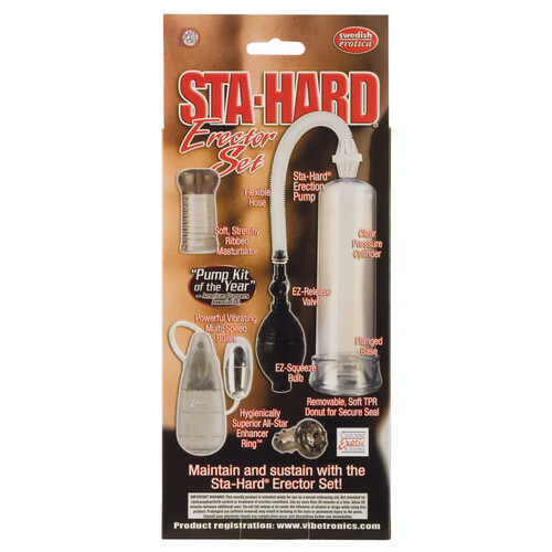 Grow your wood fast with Sta-Hard® Erector Set's proven penis pump method –– slide it into the cylinder and squeeze the pump bulb!