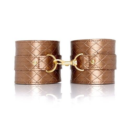 Bronze quilted faux leather ankle cuffs add a classy, sophisticated look to your kinky play! Embrace your wildest fantasies and surrender control!