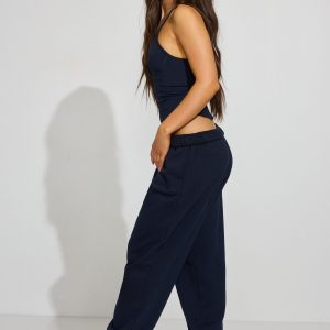 UltraFleece Boyfriend Sweatpants Navy women – Color may rub off on lightly colored fabrics. Wash separately to avoid color transfer. Dump him but keep the sweats. Features Drawstring at elasticized waistband Two-pocket styling Ultra-soft fleece interior Logo embroidered at front Size & Fit Fit: Relaxed Rise: High Model is wearing size S Materials & Care Content: 75% cotton, 25% recycled polyester Care: Machine wash, cold Imported