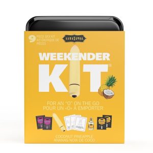 Unpack sexy romance with this naughty weekend getaway kit! Includes 10-function bullet vibe, kissable body oil, flavored lube, glide, cards, and more!