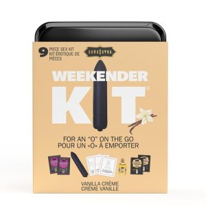 Unpack sexy romance with this naughty weekend getaway kit! Includes 10-function bullet vibe, kissable body oil, flavored lube, glide, cards, and more!