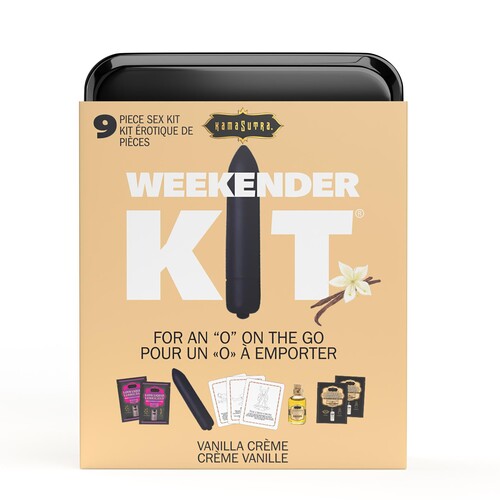 Unpack sexy romance with this naughty weekend getaway kit! Includes 10-function bullet vibe, kissable body oil, flavored lube, glide, cards, and more!